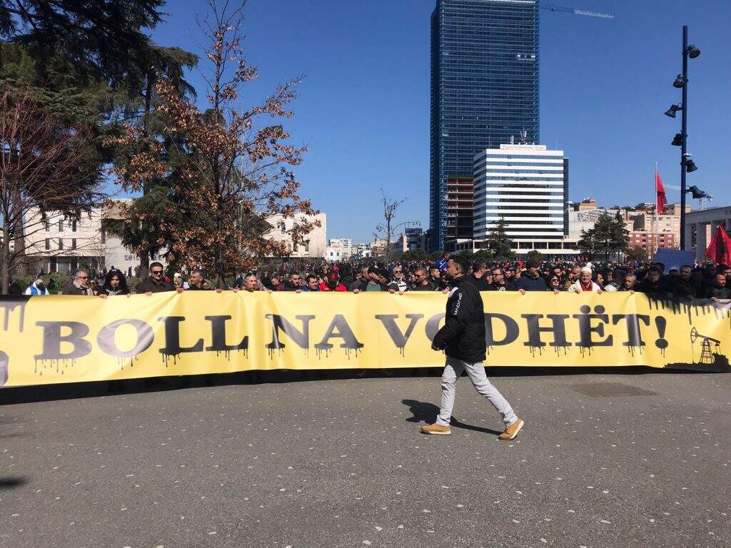 Banderola e madhe e kësaj proteste ka mbishkrimin “Boll na vodhët”, ndërsa një ditë më parë një tjetër banderolë shkruante “Shteti oligarkëve”.