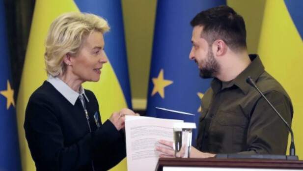 Më herët, Von der Leyen i dorëzoi Zelensky-t zarfin për anëtarësimin në BE.