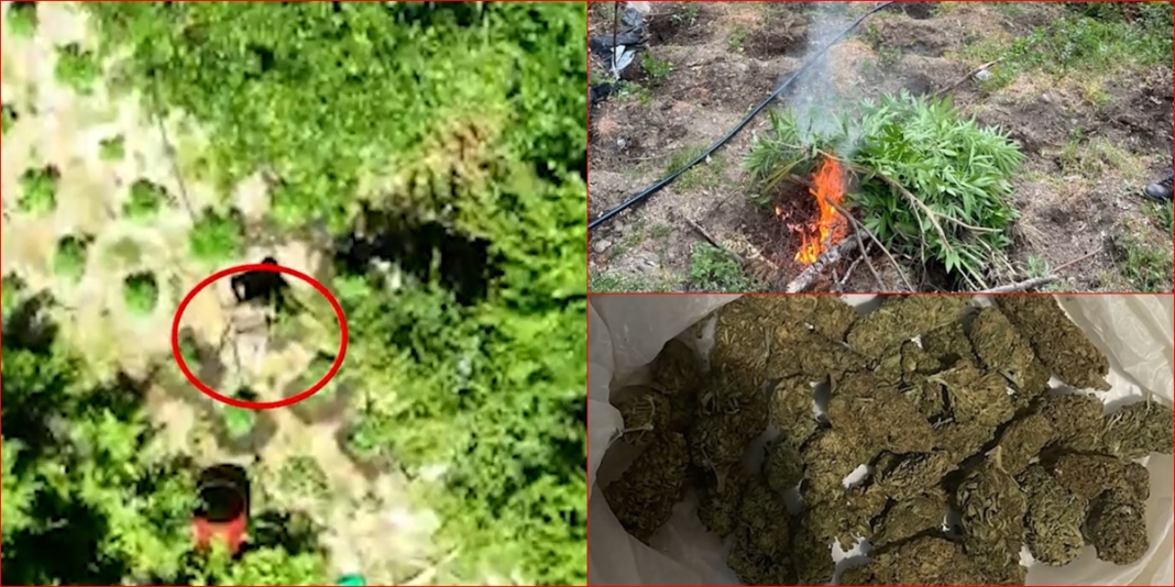 Evidentohet nga droni duke ujitur bimët e dyshuara narkotike, kapet dhe arrestohet në flagrancë 45-vjeçari.