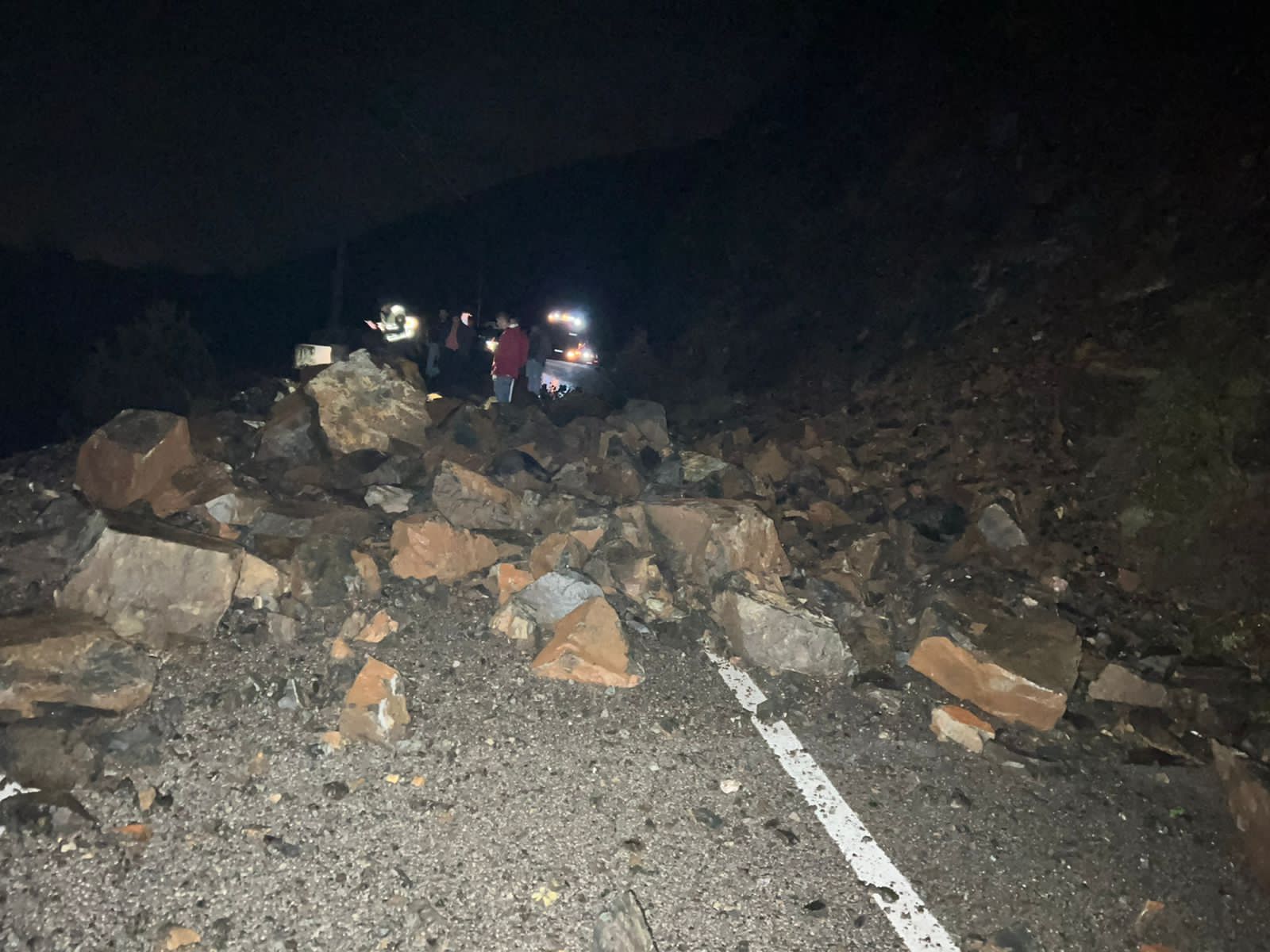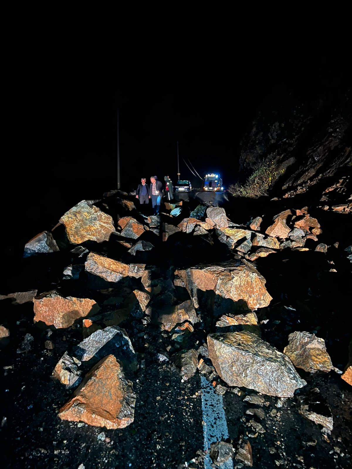 Gjithashtu kanë rënë gurë që fatmirësisht nuk kanë prekur makinat. Mbi 30 automjete janë bllokuar si pasojë e rrëshqitjes së dherave dhe gurëve.