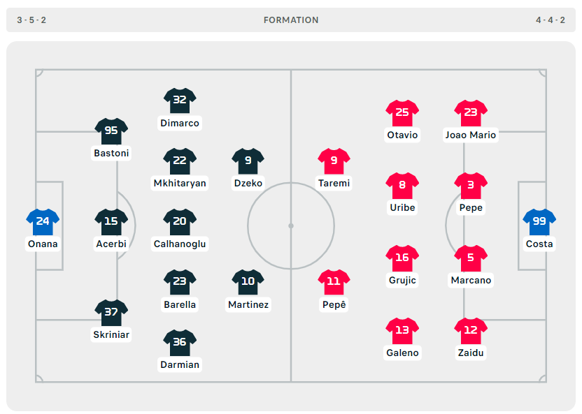 Janë publikuar formacionet zyrtare të ndeshjes mes Interit dhe Portos, e vlefshme për 1/8 e finales së Ligës së Kampionëve.