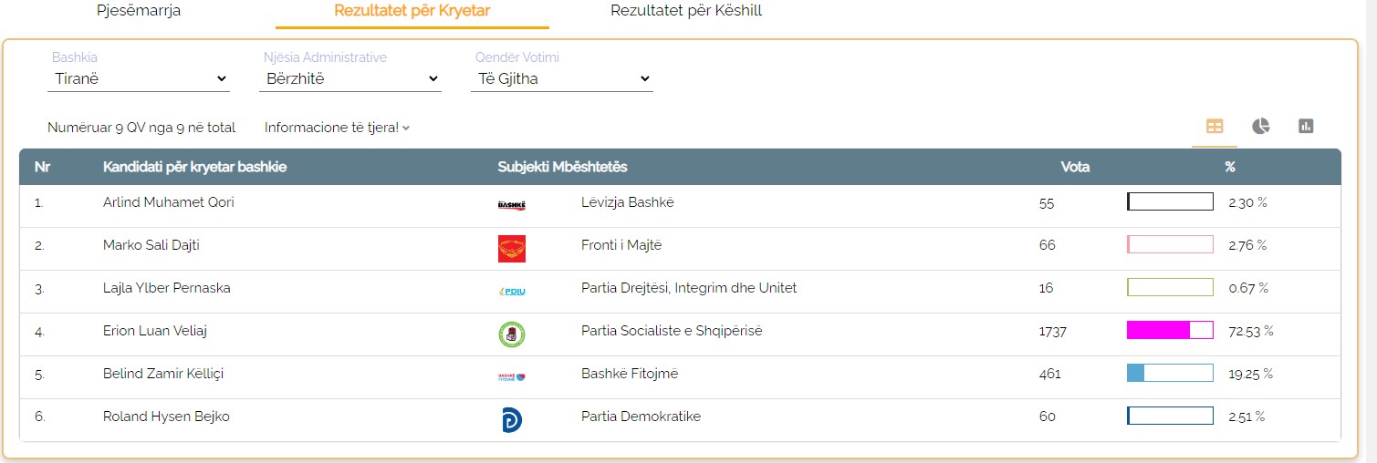 Madje në këto katër njësi, Dajti ka marrë më shumë vota se kandidati i PD-së zyrtare, Roland Bejko.