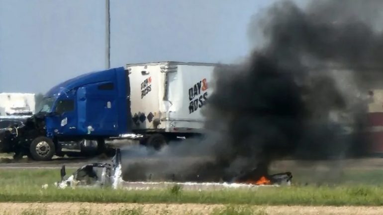 Korporata e transmetimit kanadez transmetoi video nga vendi i ngjarjes që tregonte zjarrfikësit duke u munduar ta shuajnë zjarrin në një automjet të bardhë të djegur që ishte në një kanal në anë të rrugës. Winnipeg Free Press tha se automjeti i dytë operohej nga Handi-Transit, i cili transporton të moshuarit dhe ata me aftësi të kufizuara. Rrjeti CTV tha gjithashtu se 15 persona kishin vdekur.
