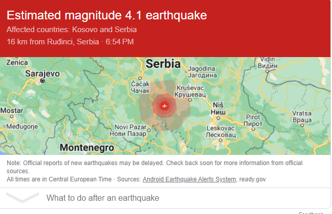Një tërmet 4 ballësh ka goditur Serbinë pak minuta më parë.