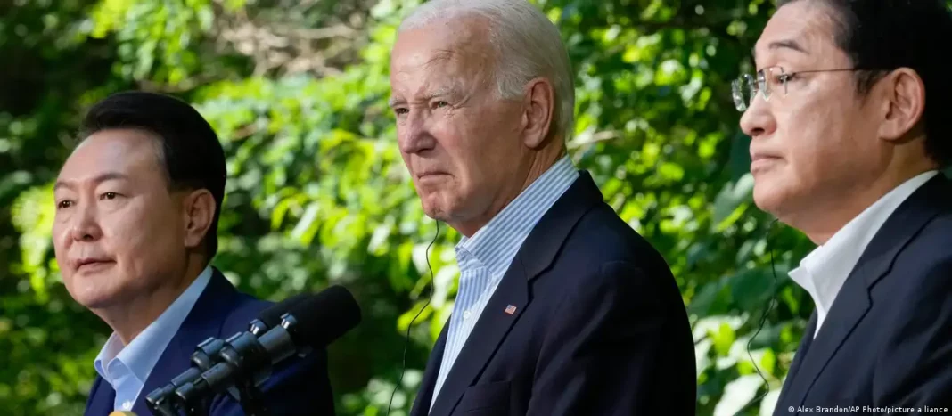 Presidenti amerikan, Joe Biden,presidenti koreano-jugor, Yoon Suk Yeol dhe kreu i qeverisë japoneze, Fumio Kishida u takuan në rezidencën e presidentit amerikan, Camp David pranë Uashingtonit. Biden bëri fjalë për një “epokë të re partneriteti”. Dhe jo “për një ditë, një javë apo një muaj, por për dekada e dekada.”