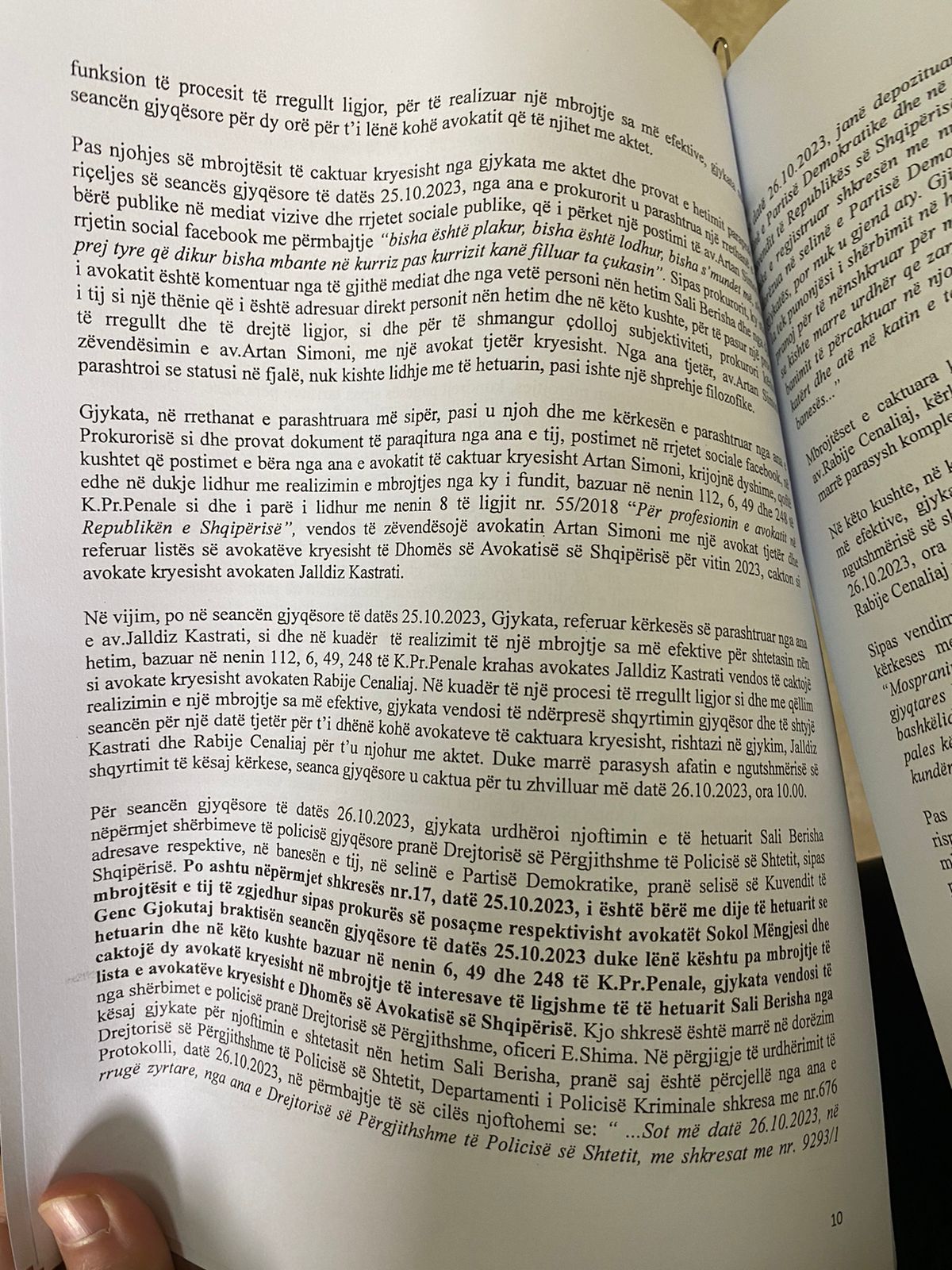 Në vendimin e GJKKO-së të zbardhur theksohet se oficerët bënë disa përpjekje që ish-kryeministri Sali Berisha të njoftohej zyrtarisht për masën e dhënë nga GJKKO. Në datën 23.10.2023, Prokuroria e Posaçme Kundër Korrupsionit dhe Krimit të Organizuar, ka paraqitur pranë sekretarisë së kësaj Gjykate, njoftimin mbi zbatimin e masës së sigurimit personal shtrëngues “Detyrim për t’u paraqitur në policinë gjyqësore” ndaj të hetuarit Sali Berisha.