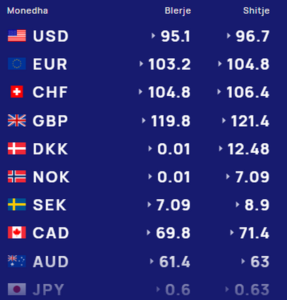 Franga zvicerane këmbehet në blerje me 104.8 lekë, ndërsa në shitje me 106.4 lekë.