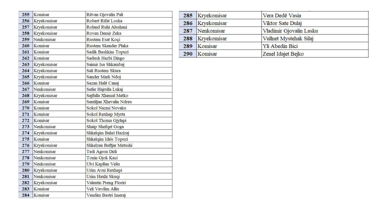 Komisioni i Vlerësimit të Aplikimeve ka publikuar listën e kandidatëve që kanë shprehur interes për pozitat e “Shefit të Komisariatit”. 290 persona janë në garë për të drejtuar 48 komisariate në të gjithë vendin, ndërsa 10 prej tyre janë gra.