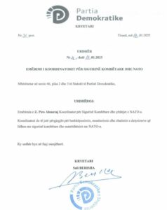 Ai mbetet zë i njohur në komunitetin e sigurisë kombëtare në rajon dhe në selitë e sigurisë në Uashington, Bruksel dhe Kolegjin e NATO-s, ku është diplomuar,” thuhet në njoftim të PD.