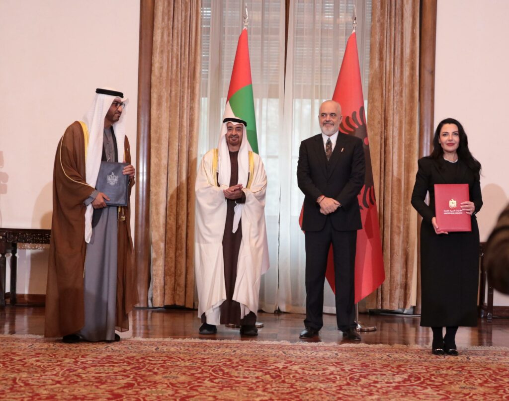 Marrëveshjet u shkëmbyen në një ceremoni të posaçme në praninë e Kryeministrit Rama dhe Presidentit të Emirateve të Bashkuara Arabe, Mohamed bin Zayed Al Nahyan.