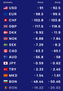 Sot dollari amerikan blihet me 91 lekë dhe shitet me 92.5 lekë. Euro blihet me 98.5 lekë dhe shitet 99.5 lekë.