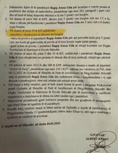Në një vendim të gjykatës së Shkodrës rezulton se Ragip Gila ka qenë i dënuar me 5 vjet burg për prodhim dhe shitje të narkotikëve, por i është ulur në 3 vjet e 4 muaj burg dhe më 4 mars të këtij viti gjykata e Shkodrës ka pezulluar ekzekutimin e dënimit me burg duke e liruar me kusht, që për 5 vite të mos bëjë asnjë vepër penale dhe me shërbim prove. Gjyqtari Albert Keraj e ka lënë të lirë me shërbim prove dhe sapo doli, Gila bëri masakrën në Shkodër.