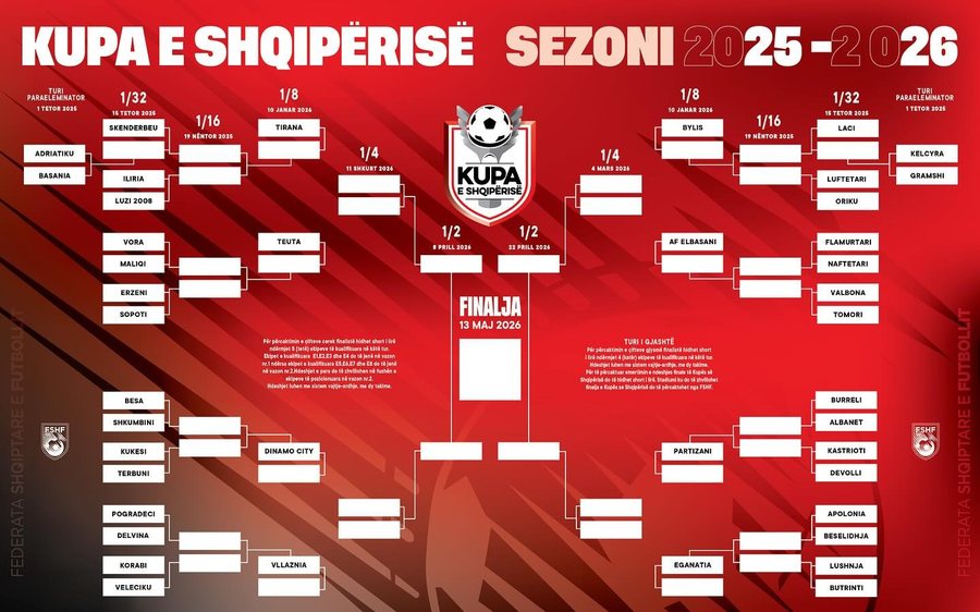 Kalendari i Kupës së Shqipërisë është publikuar të mërkurën.