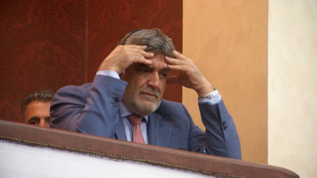Gabriel Cremades Ventura në kohën kur deputetët e opozitës ishin çuar duke hedhur libra të rregullores e shishe uji drejt Ramës dhe ministrave, shihet duke vënë duart në kokë.