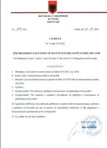 Ditën e mërkurë në orën 10:00 do të zhvillohet seanca e radhës parlamentare.