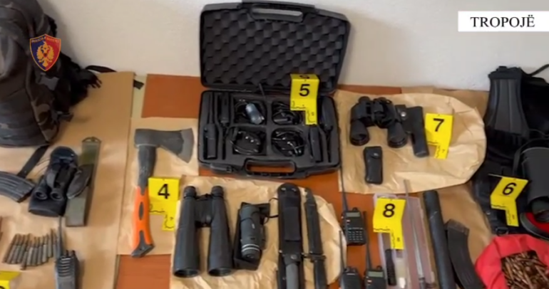 Gjatë kontrollit në automjetin dhe banesat e tyre u sekuestruan dy armë zjarri, silenciator, municion luftarak, radio marrëse-dhënëse, dylbi, thika dhe sëpata.