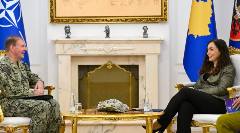 Presidentja e Kosovës, Vjosa Osmani, gjatë një takimi me admiralin e NATO-s Stuart B. Munsch në Prishtinë, ka theksuar sfidat e sigurisë dhe kërcënimet e vazhdueshme nga Serbia, veçanërisht në veri të vendit.