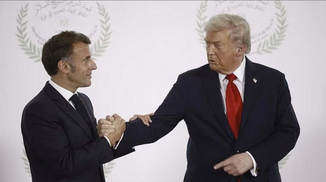 Shtrëngimi i çuditshëm i duarve i Donald Trump me Emmanuel Macron në samitin e paqes në Gaza ka marrë një kthesë misterioze, ndërsa detaje të reja zbulojnë një bisedë të tensionuar.