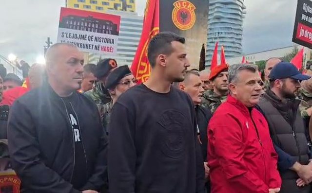 Ai u shfaq duke mbajtur simbole të UÇK-së dhe ishte i shoqëruar nga deputeti socialist Taulant Balla.