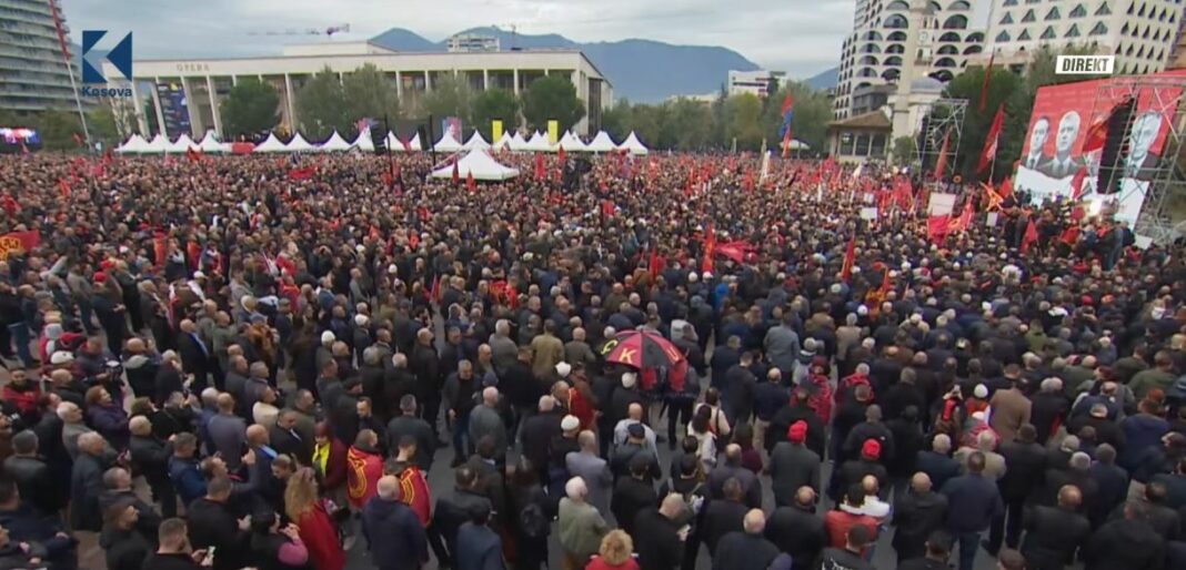 “…edhe në Tiranë”, duke nënvizuar se kjo ishte një nga protestat më të mëdha të mbajtura kundër proceseve në Gjykatën Speciale, pas atyre në Prishtinë dhe Hagë.