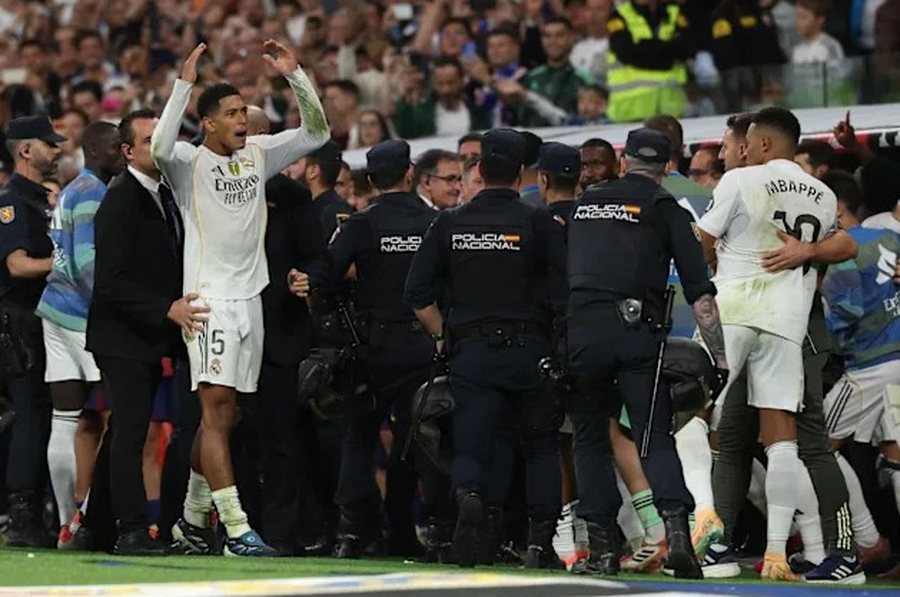 Pedri mori kartonin e dytë të verdhë dhe duhet të largohej nga fusha, kur shpërtheu kaosi. Nga ky moment kishte sherr masiv mes pankinave të Realit dhe Barçës.