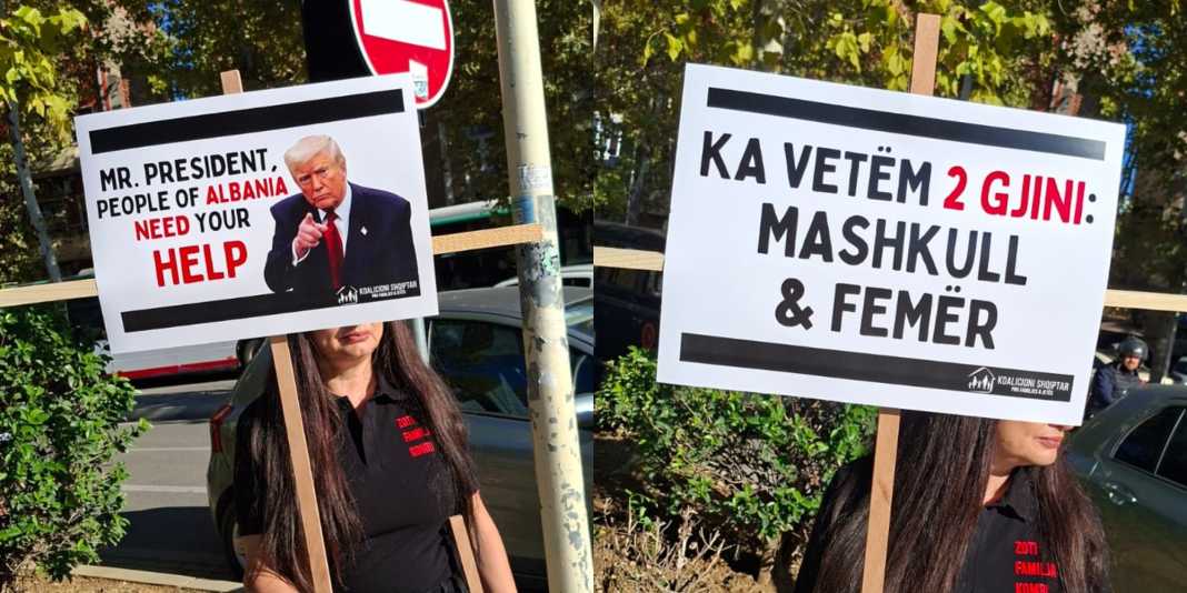Protestuesit mbajnë pankarta në duar duke vënë theksin se ka vetëm dy gjini. Ata në një pankartë tjetër kërkuan ndihmën e presidentit amerikan, Donald Trump lidhur me këtë çështje.