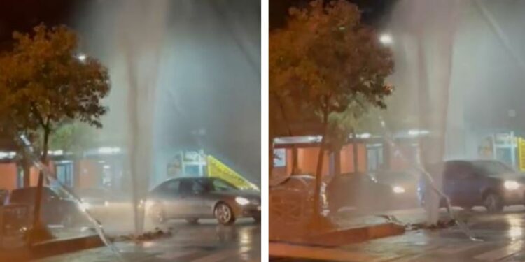 Ngjarja ka ndodhur rreth orës 19:30 dhe, sipas banorëve të zonës, deri në këto momente nuk ka mbërritur asnjë ekip teknik nga ujësjellësi për të ndërhyrë. Pamjet nga vendngjarja tregojnë një sasi të madhe uji që del me presion të lartë, duke krijuar një pamje të ngjashme me shatërvan, ndërsa rruga është mbuluar nga ujërat që rrjedhin pa kontroll.