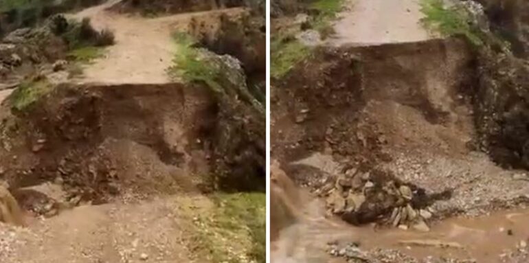 Dëmi është shkaktuar nga një tombino e shembur, e cila ka bërë rrugën të pakalueshme.