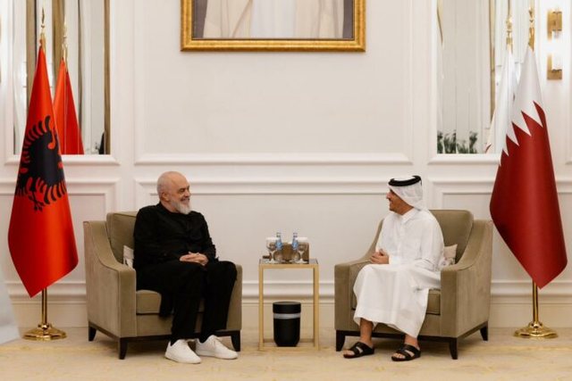 “Në rezidencën e Kryeministrit dhe Ministrit të Punëve të Jashtme të Katarit, Sheikh Mohammad bin Abdulrahman bin Jassim Al Thani, ku biseduam për thellimin e bashkëpunimit dhe disa projekte me peshë të rëndësishme për Shqipërinë”, shkruan Rama.