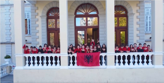 Nxënësit e shkollës 9-vjeçare “Ndre Mjeda” në Shkodër realizuan një video-kartolinë urimi për festat e 28 dhe 29 Nëntorit, duke u veshur me ngjyrat e flamurit.