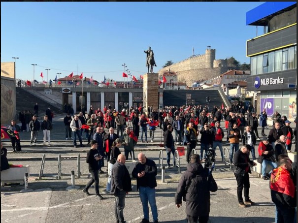 Sot, një grup i madh protestuesish u mblodhën në Shkup për të shprehur mbështetje ndaj ish-krerëve të Ushtrisë Çlirimtare të Kosovës (UÇK).