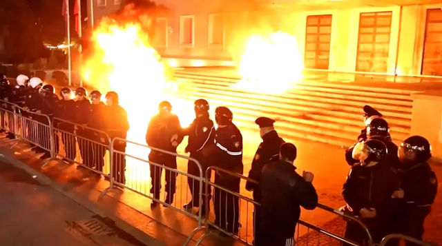 Protesta, e organizuar nga lideri veteran i opozitës Sali Berisha dhe Partia e tij Demokratike, pasoi skena kaosi në parlamentin e Shqipërisë javën e kaluar, kur policia ndërhyri pasi deputetët u përleshën dhe ndezën flakadanë brenda sallës.