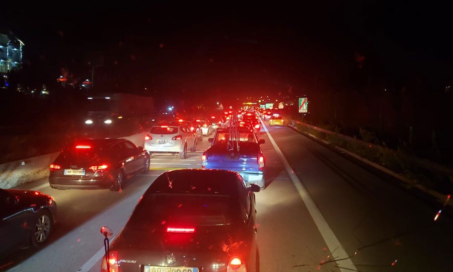 Shkak për radhën kilometrike të automjeteve janë punimet që po kryhen për ndërtimin e autostradës.